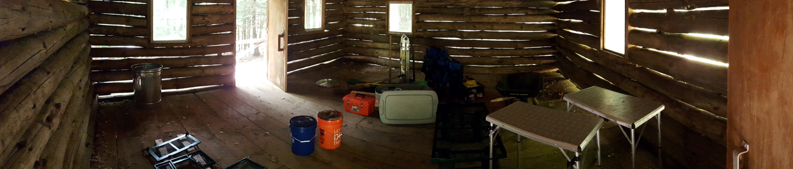This is a panorama of the cabin at Salamander City, not long after I started in on it (click to see a larger image).