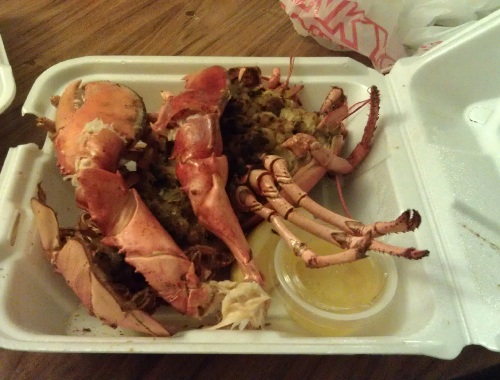 The cold weather drove the lobsters further out to sea. All the restaurants along Crescent Beach took them off the menu, including Barnard’s. But they’re back, here. We got ’em. We’re the only ones. And we’re selling ’em dirt freaking cheap.